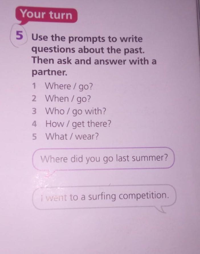 Where did you go last summer (last week, last holiday, last winter) *ответ* I went to my aunt house, Last week I went to dance club, Last winter I went to ice skating