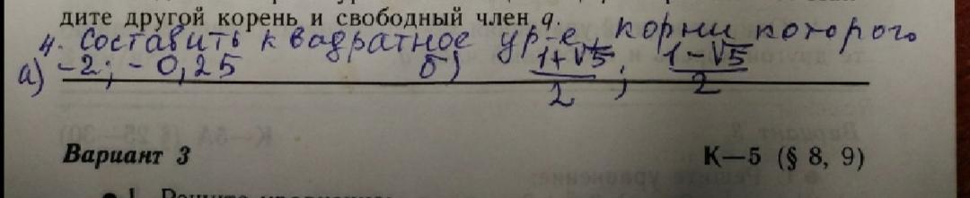 Помогите пожалуйста, не знаю как решить!! Номер 4 составить кв.уравнение