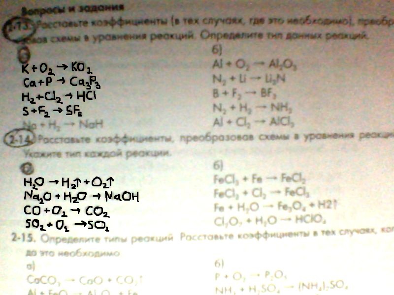 2-13 Расставьте коэффициенты ( в тех случаях где необходимо) , преобразовав их в схемы уравнения реакций. Определите тип данных реакций.