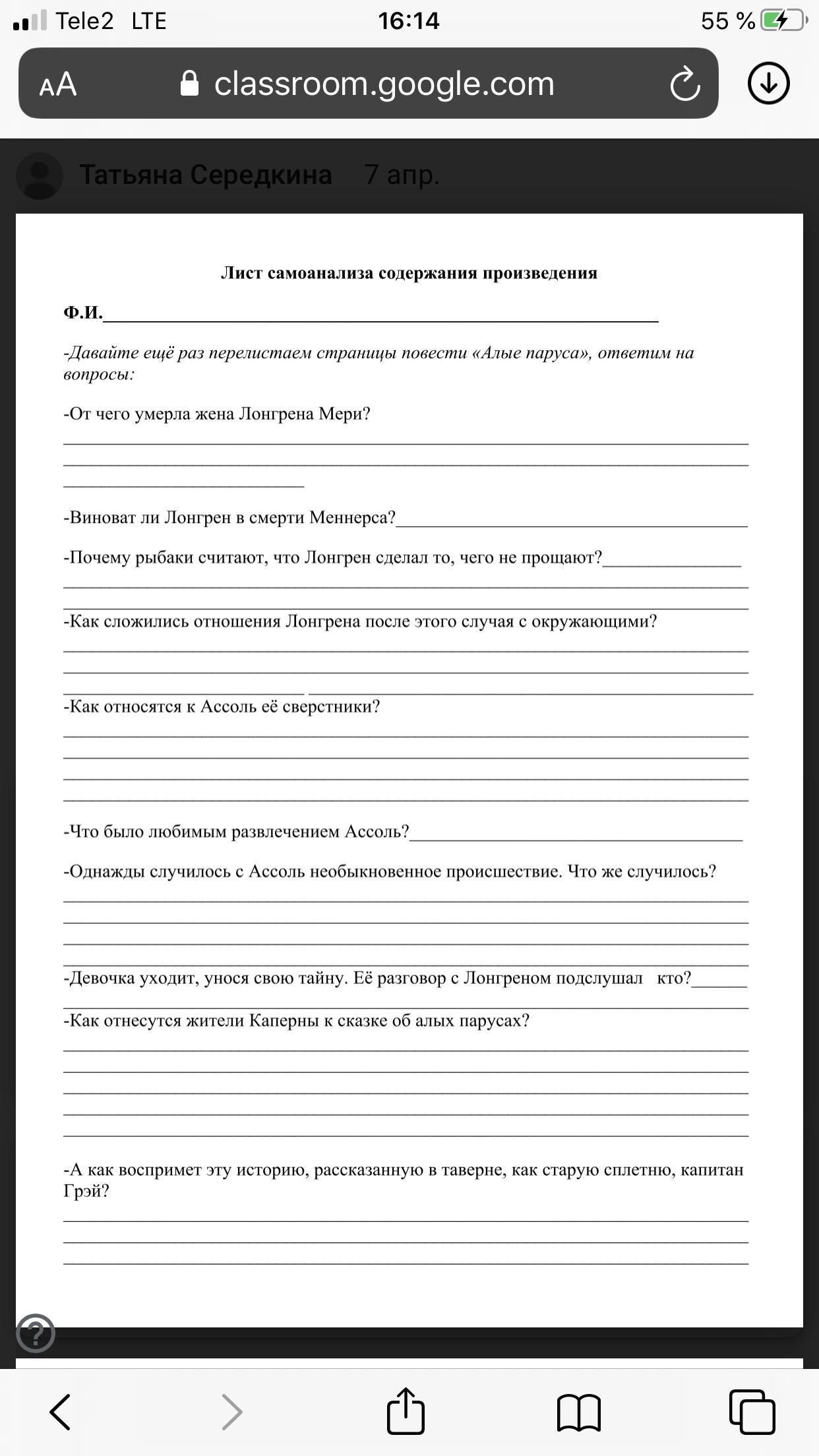 Что бы там ни было, а весть о таком демонстративном бездействии Лонгрена поразила жителей деревни сильнее, чем если бы он собственными руками утопил человека. Недоброжелательство перешло чуть ли не в ненависть и обратилось также на ни в чем не повинную Ассоль, которая росла наедине со своими фантазиями и мечтами и как будто не нуждалась ни в сверстниках, ни в друзьях. Отец заменил ей и мать, и подруг, и земляков.