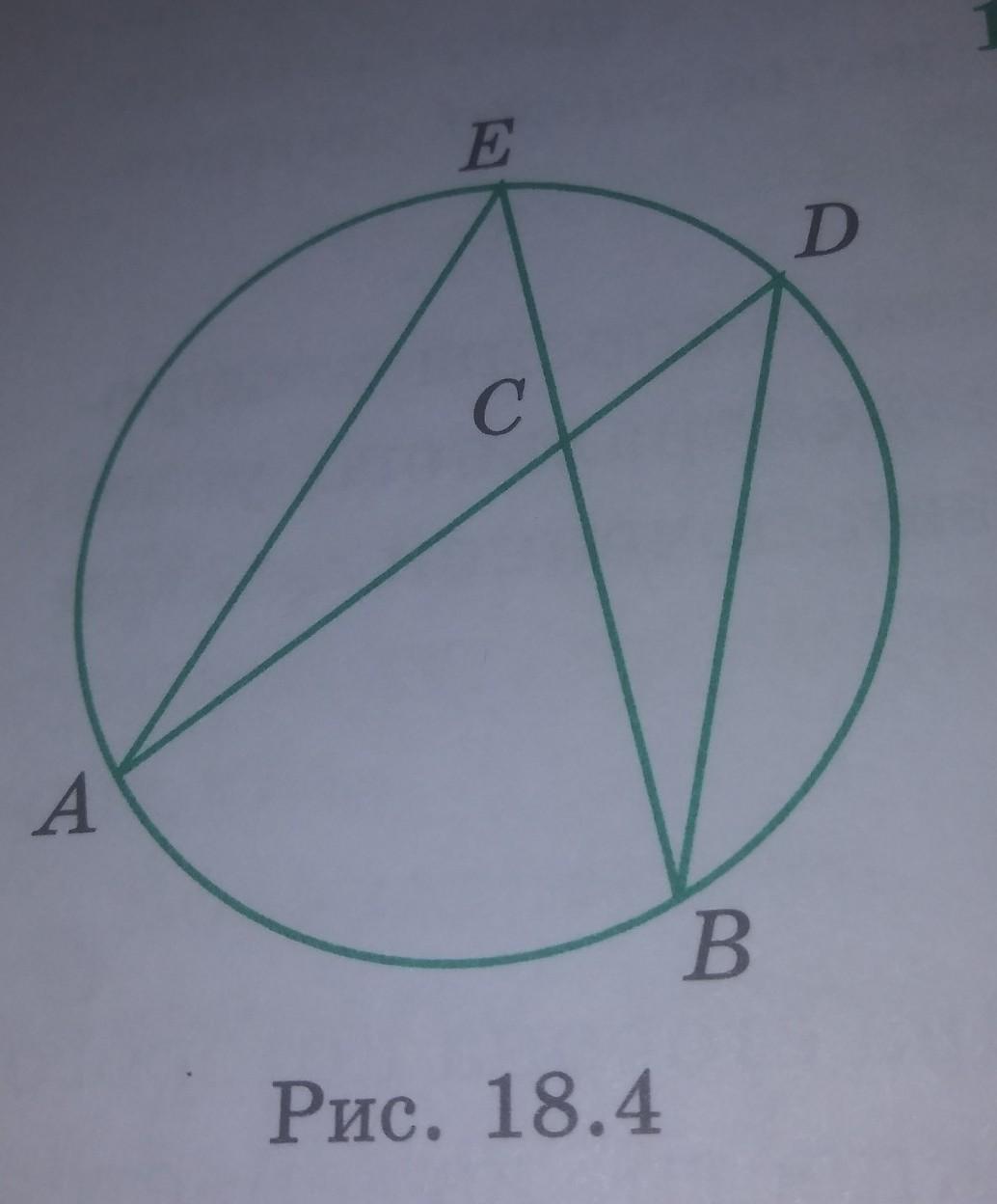 Дуги АВ и DE окружности составляют соответственно 85°и 45° .найдите угол АСВ образованный хордами AD и ВЕ ,пересекающимися в точке С ( рис 18.4)