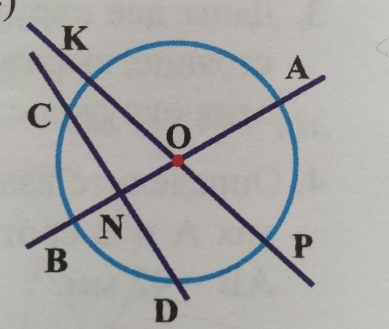 точка пересечения двух прямых находится внутри окружности. O- центр окружности Покажите OK*OP=OA*OB