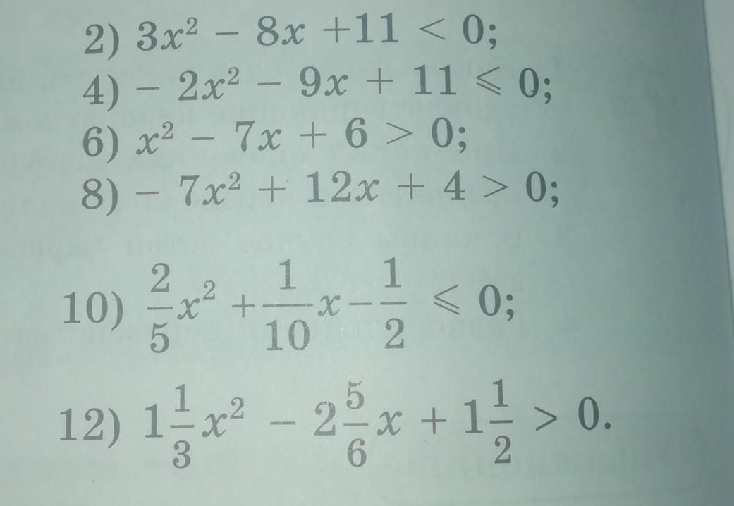 7) 5х^2 - x+ 6 < 0;