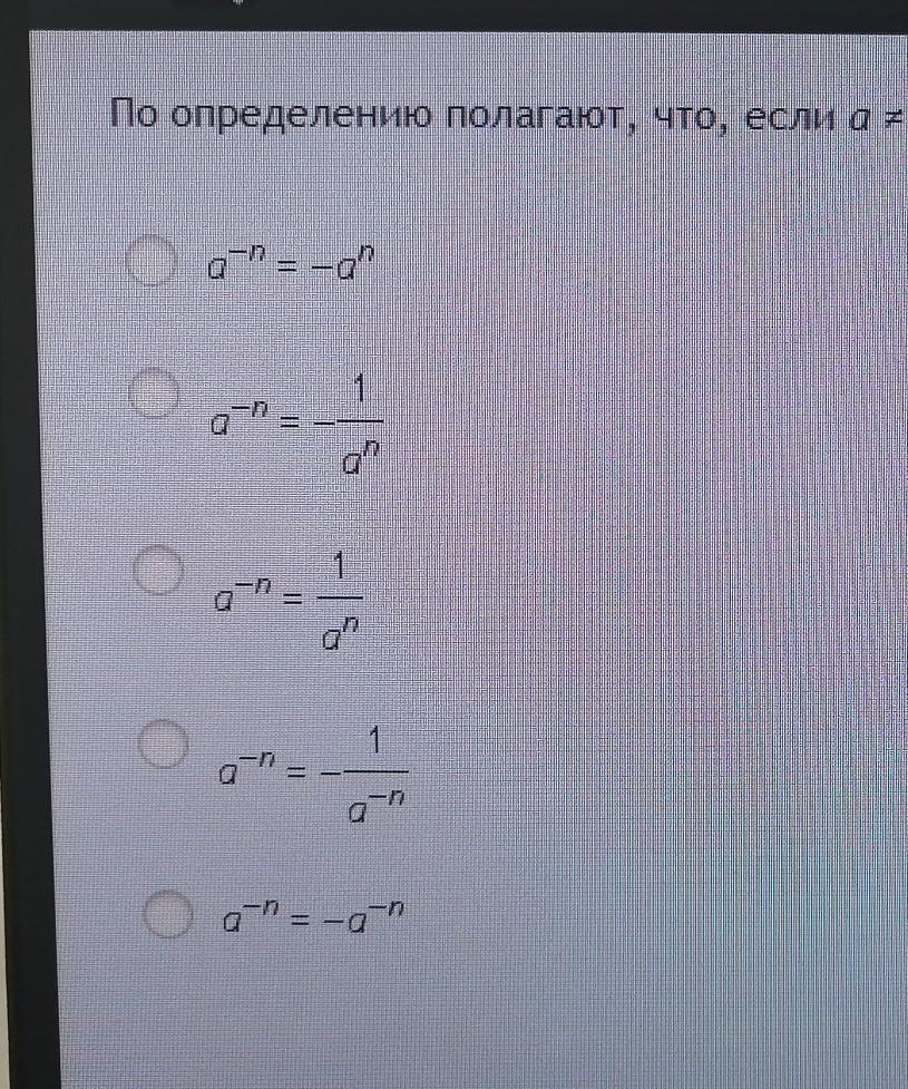 По определению полагают, что, если a нервно 0, n - натуральное число, то: