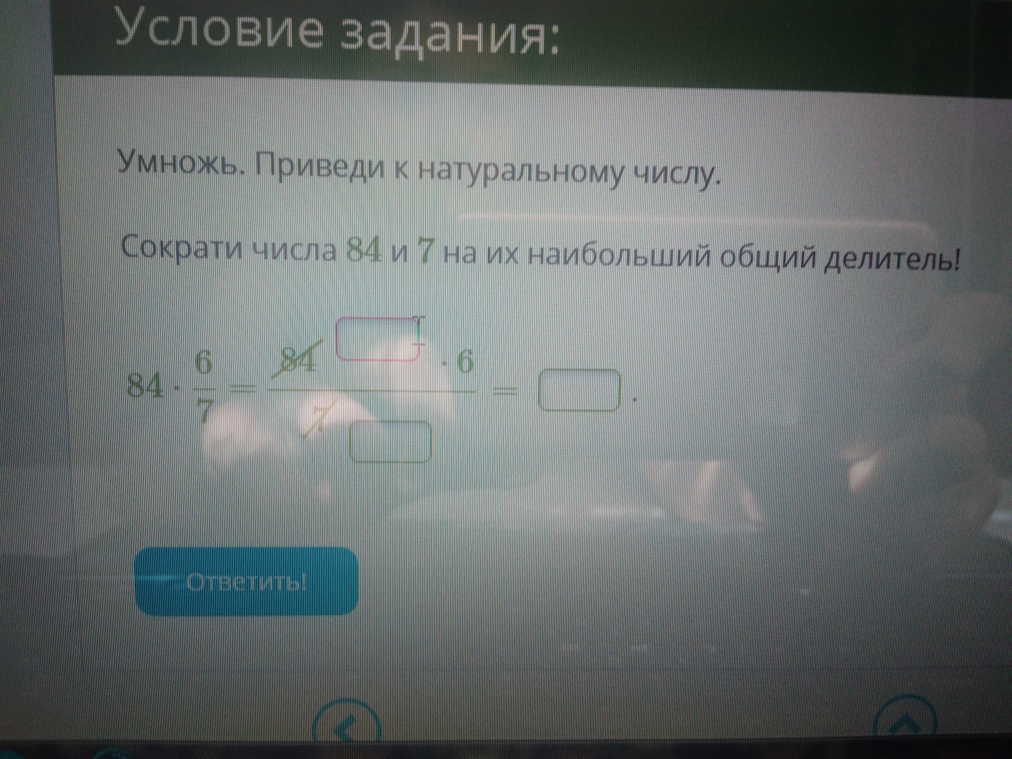 84 сокращаем с 7, будет 12/1 или же просто 12. Далее умножаем 12 на 6=72