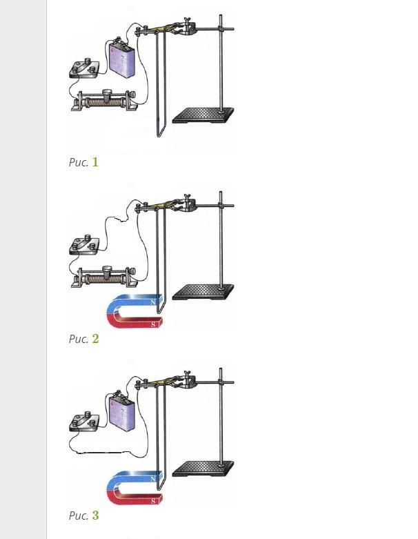 На каких рисунках изображены цепи, при замыкании ключа в которых проводник придёт в движение?