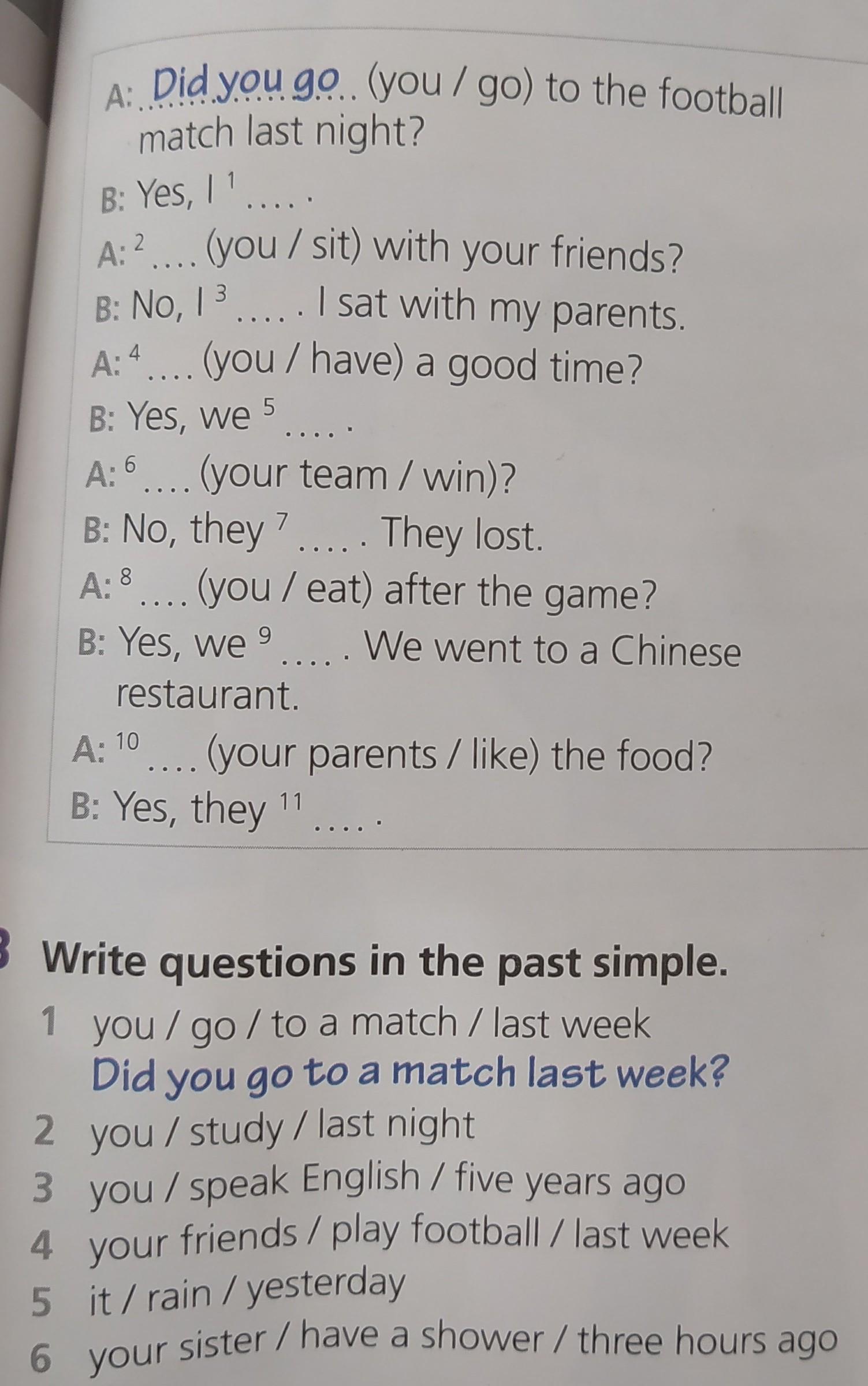 4. Did your friends play football last week?