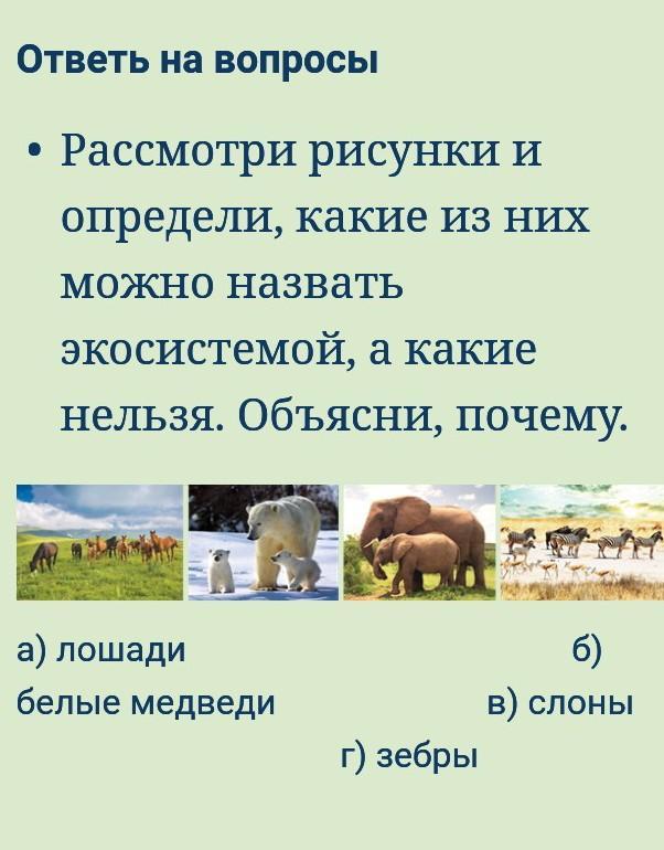 Рассмотри рисунки и определи, какие из них можно назвать экосистемой, а какие нельзя. Объясни, почему