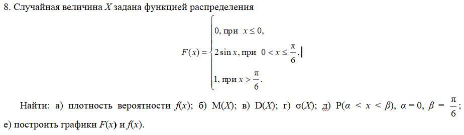 Случайная величина Х задана функцией распределения. Только последнее задание где построить 2 графика, остальное уже решено