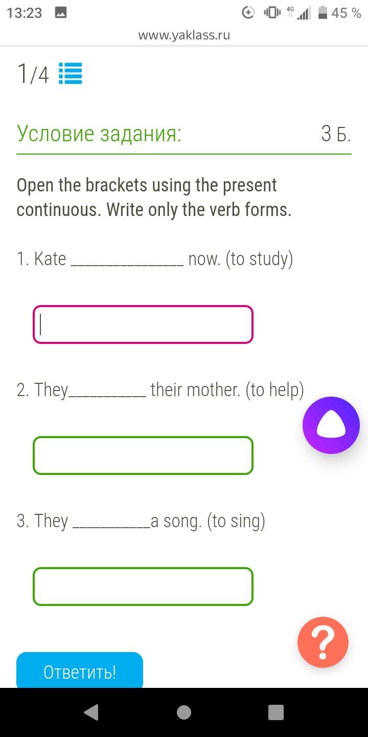 4) Kate is studying now.