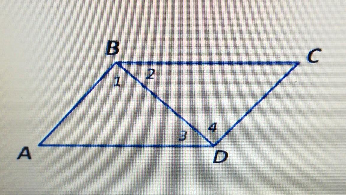 На рисунке угол 1 равен углу 4, а угол 2 равен углу 3. Являются ли равными треугольник