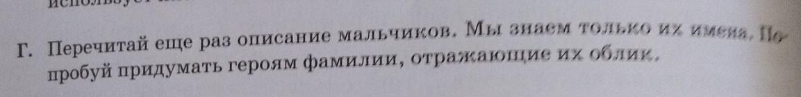 Перечитай ещё раз описание мальчиков мы знаем только их имена Попробуй придумать героям фамилии отражающие их облик