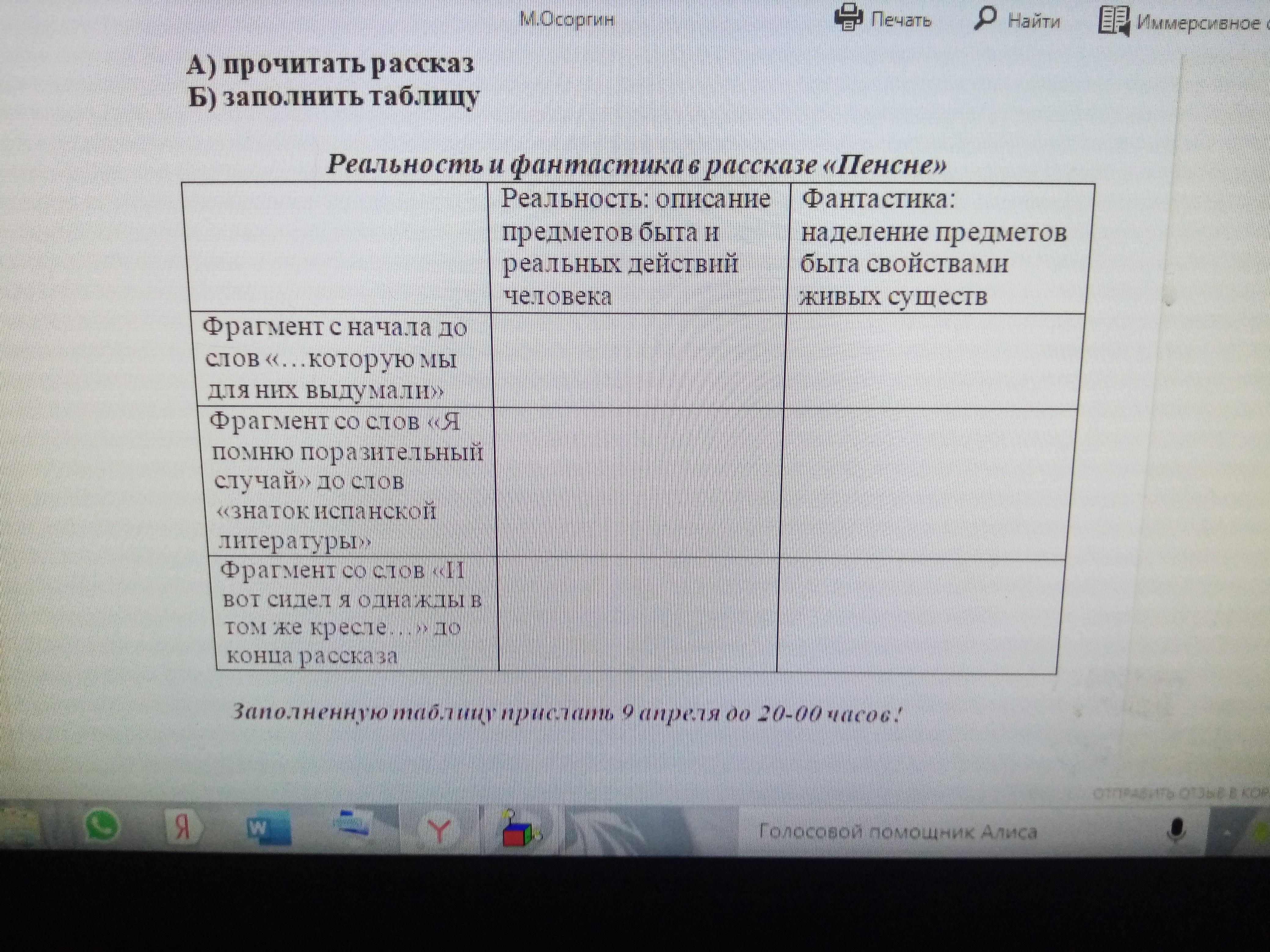 М. Осоргин "пенсне" СРОЧНО НАДО СРОЧНО!!!!!!!! Таблица срочно даю все свои баллы