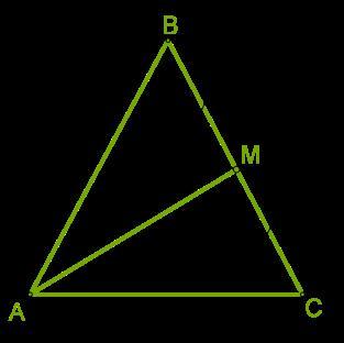 В равностороннем треугольнике проведена медиана AM = 9 см. Определи расстояние от точки M до стороны AC. 1. Угол MAC = °. 2. Расстояние от точки M до стороны AC равно см