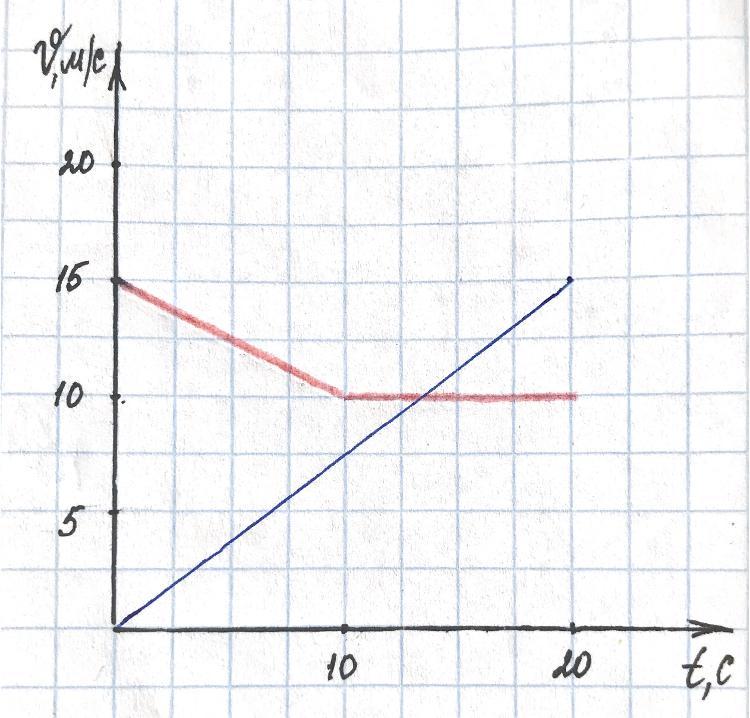 найдите разность путей, пройденных телами за 20 секунд (см.фото)