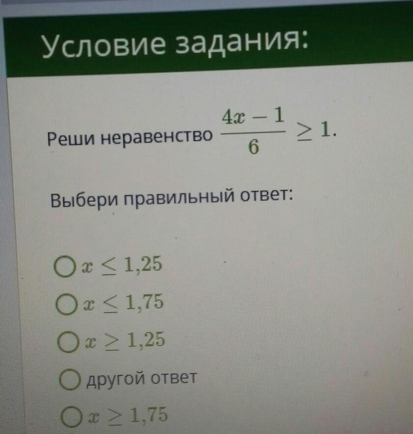 4х-1/6≥1
