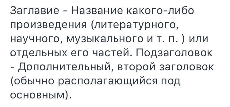Ответ: Заглавие очень нужный пункт как по мне. Оно указывает на какой-то пункт,заставляет вдуматься. Также в основном,читатель запоминает именно заглавие. И чтобы понять о каком тексте идет речь, мы называем "имя текста". Если бы не было названия,догадаться бы о каком тексте идет речь, было бы намного сложнее,так как у многих произведений может быть похожий сюжет или похожие персонажи