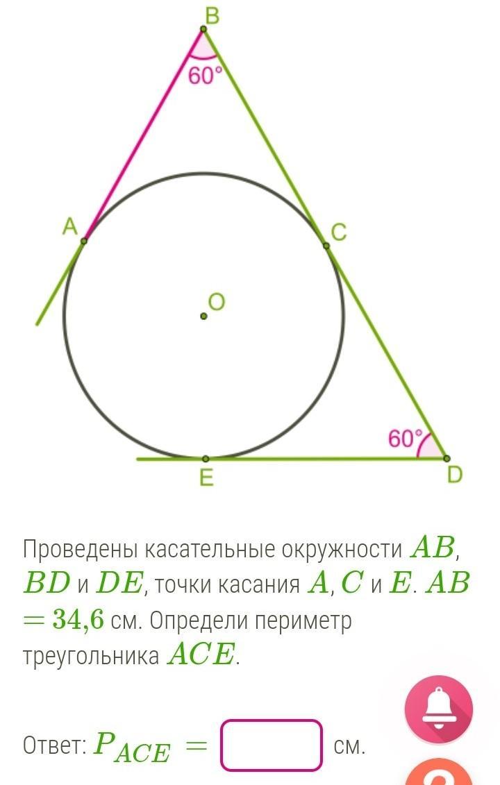 ПОМОГИТЕ ПОЖАЛУЙСТА срочно даю 100 баллов. Проведены касатнльные окружности AB, BD и DE, точки касания A, C и E. AB ACE. Ответ : P ace=