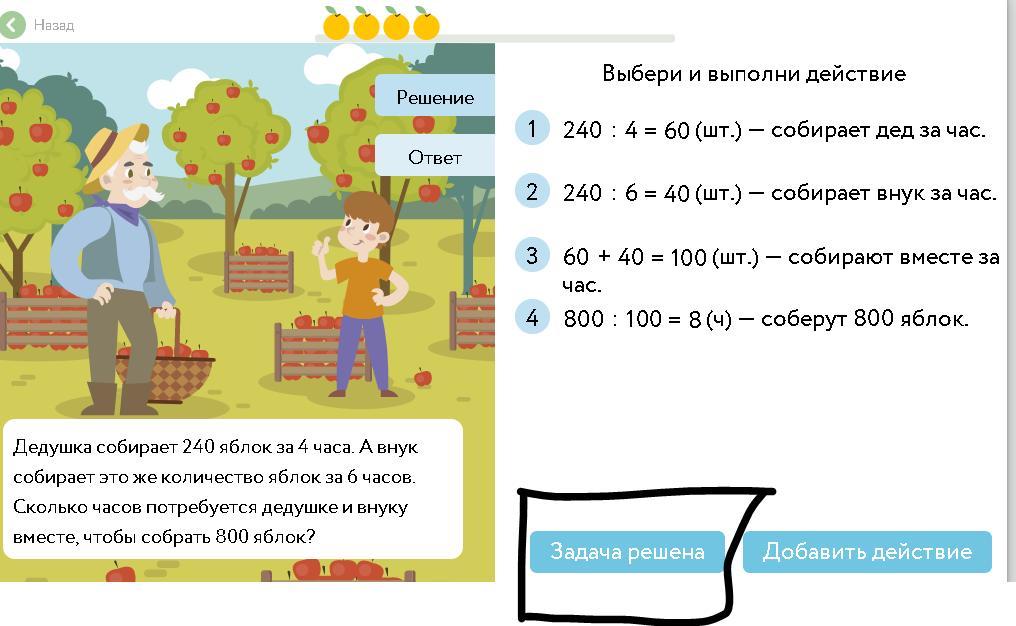 Дедушка собирает 240 яблок за 4 часа. А внук