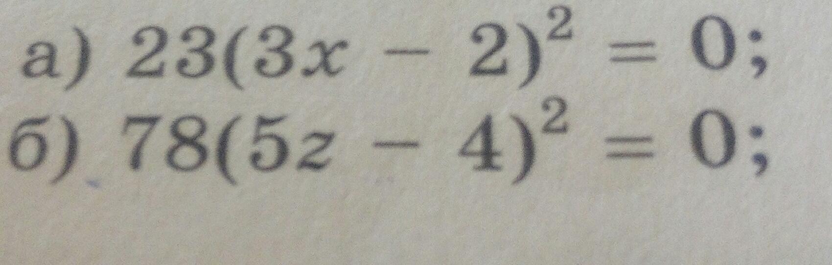 б) 78(5z -4)^2=0