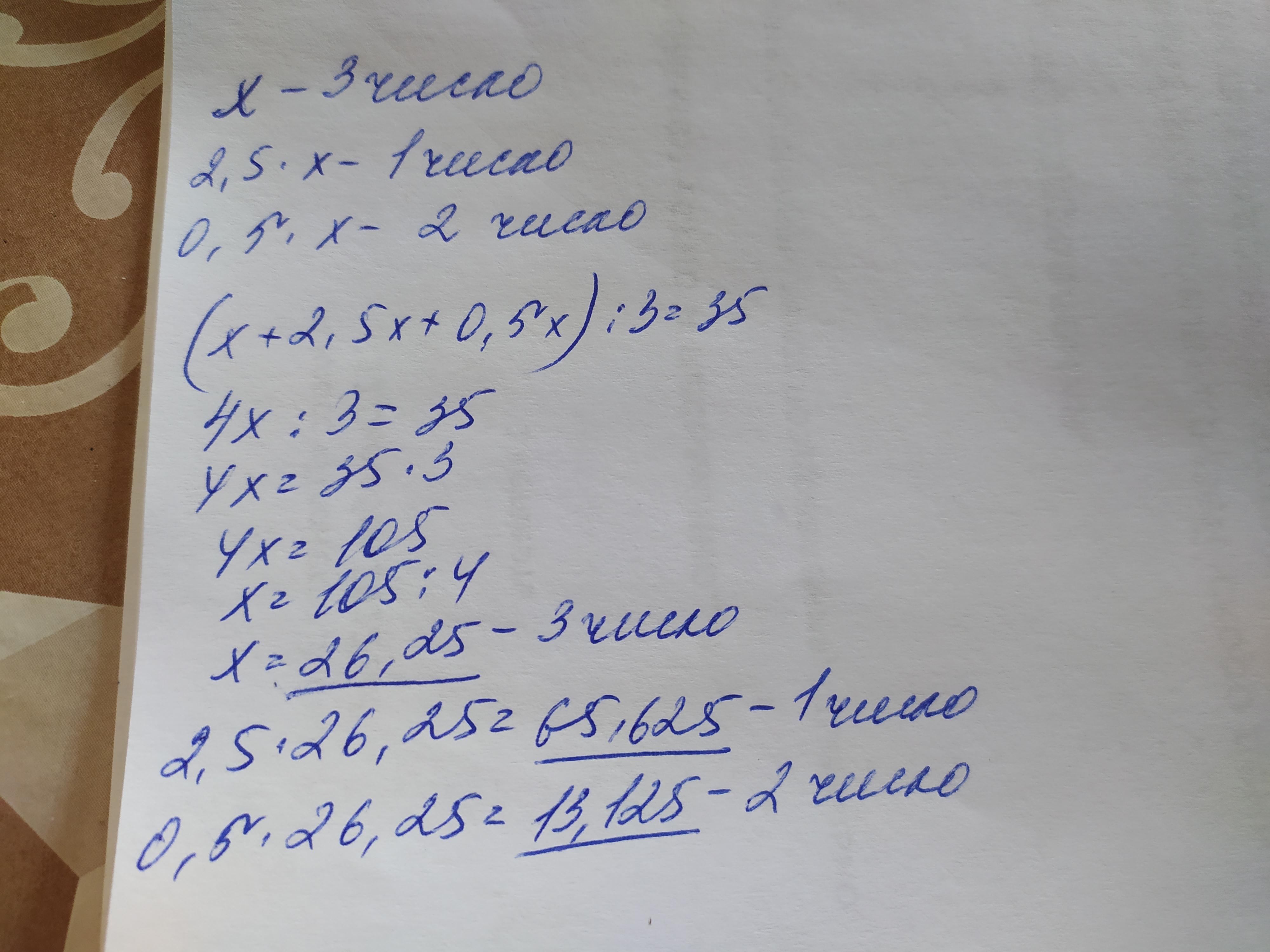 даю 20 баллов!!! Среднее арифметическое трёх чисел — 35.