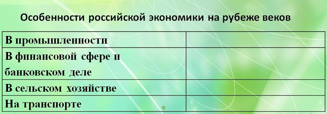 Помогите с заданием по истории России 9 класс. Сделать таблицу: особенности российской экономики на рубеже веков. Тема: Экономическое развитие России: город и деревня.