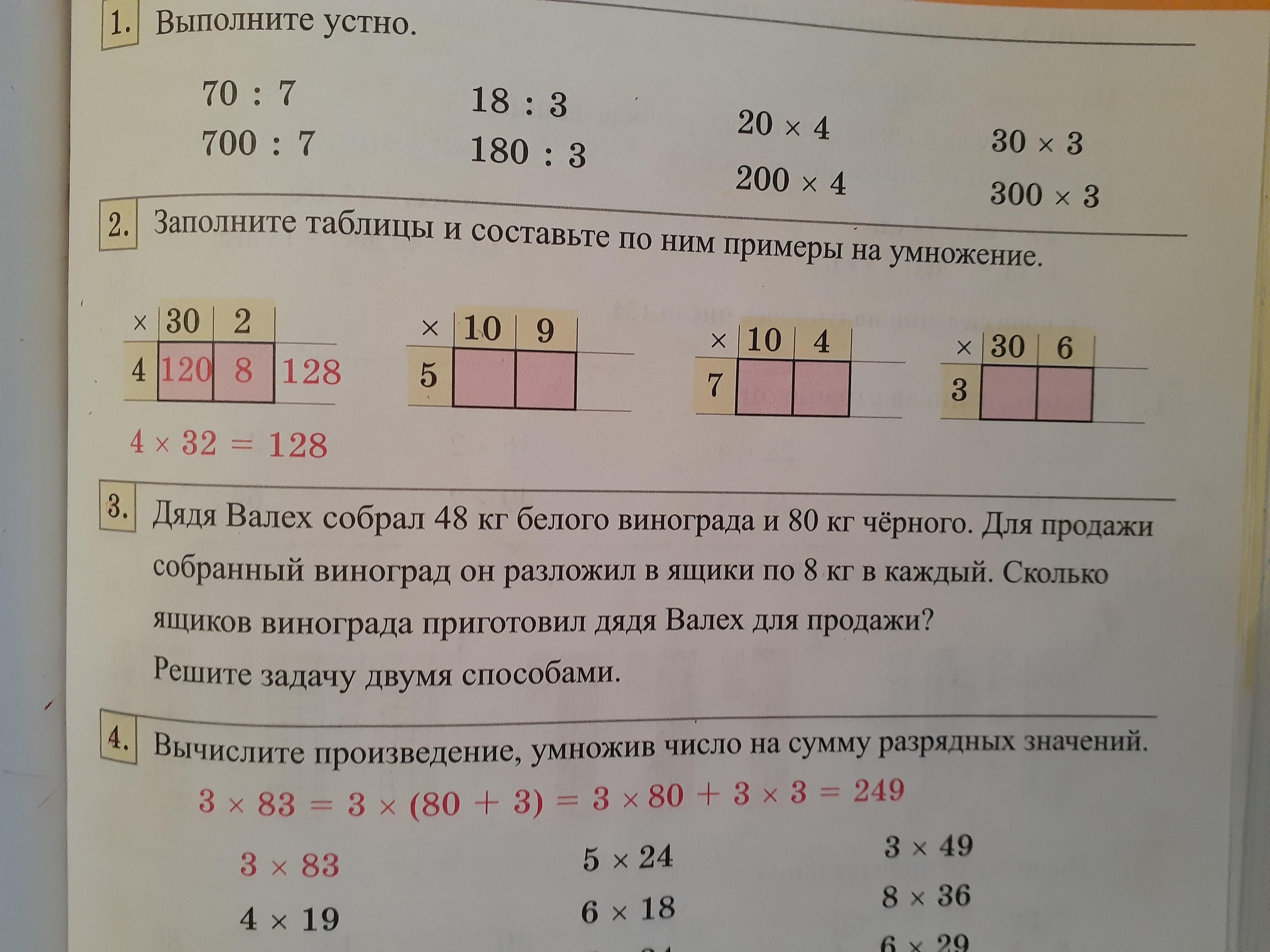 2) 128:8=16(ящ.)-винограда. Ответ:16 ящиков дядя Валех повёз на продажу. 1) 48:8=6(ящ.)-винограда. 2) 80:8=10(ящ.)-винограда. 3) 10+6=16(ящ.)-всего. Ответ: 16 ящиков дядя Валех повёз на продажу.