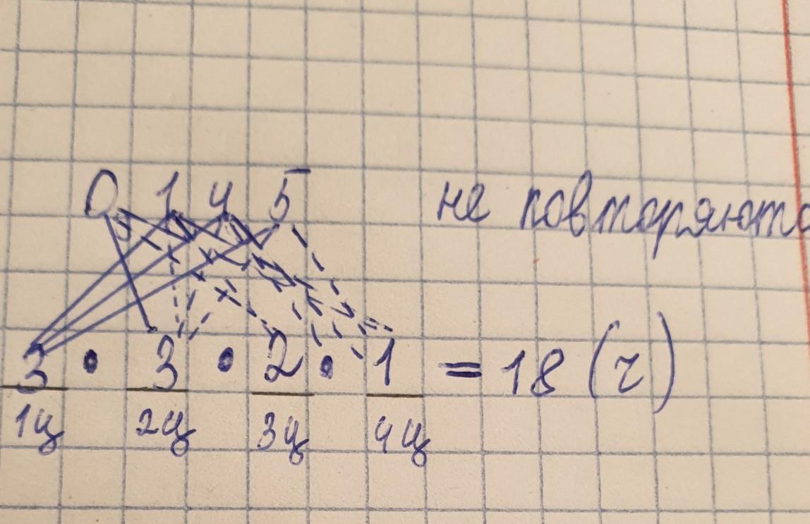 2. Сколько четырехзначных чисел можно составить из цифр 0, 1, 4,5, если цифры в записи числа не повторяются?