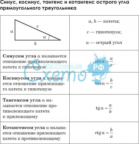 Синус кута = відношенню протилежної сторони до гіпотенузи;