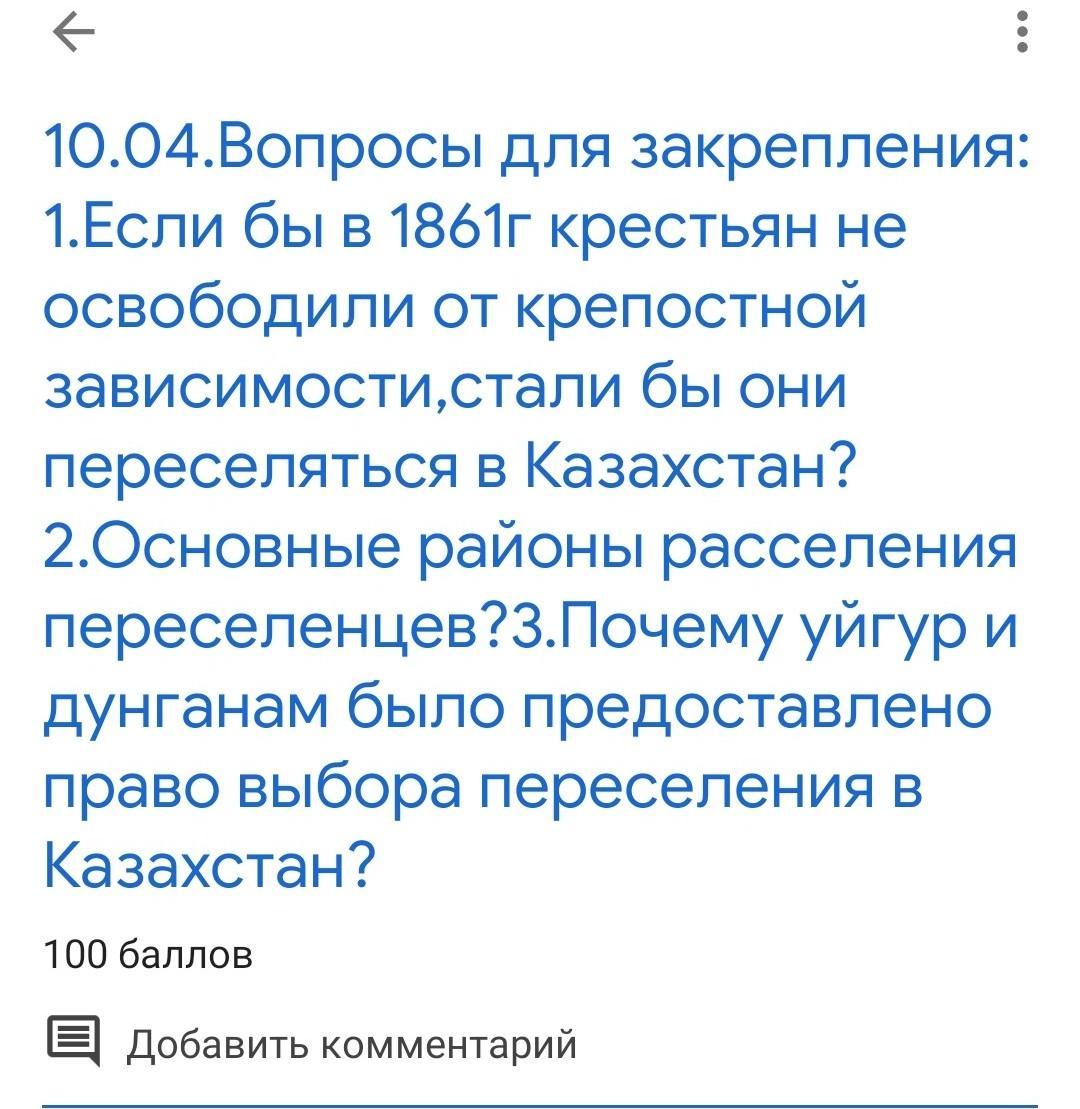 1)Если бы в 1861г. крестьян не освободили от крепостной зависимости,стали бы они переселяться в Казахстан?