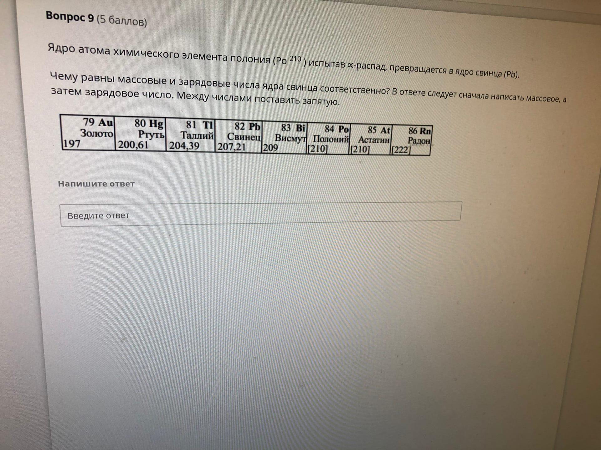 Ядро атома химического элемента полония (Po 210 ) испытав ∝-распад, превращается в ядро свинца (Pb).