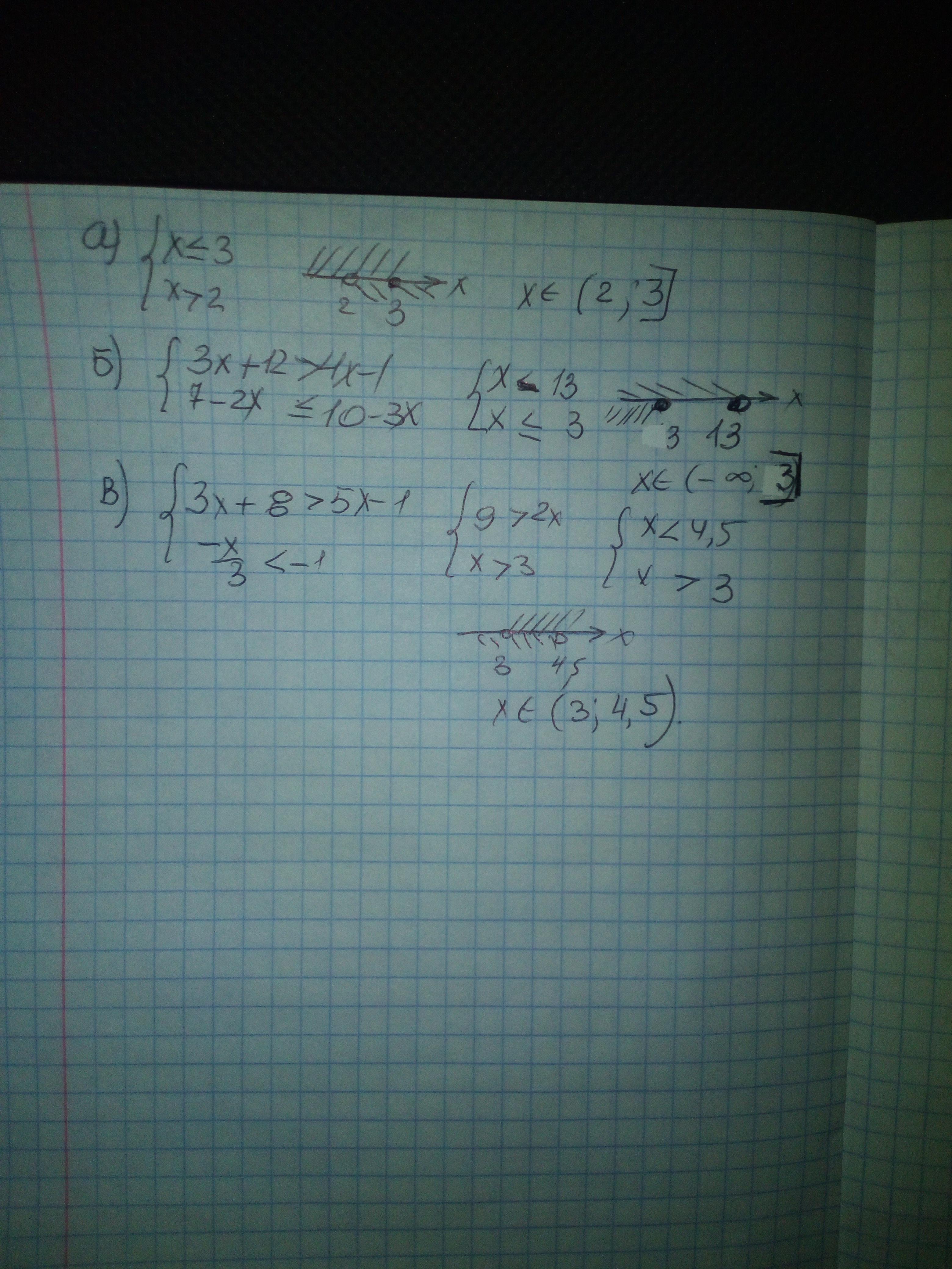 б) {x < 13 ;x ≤ 3. ⇒ x ≤ 3. иначе x∈ (-∞ ; 3]