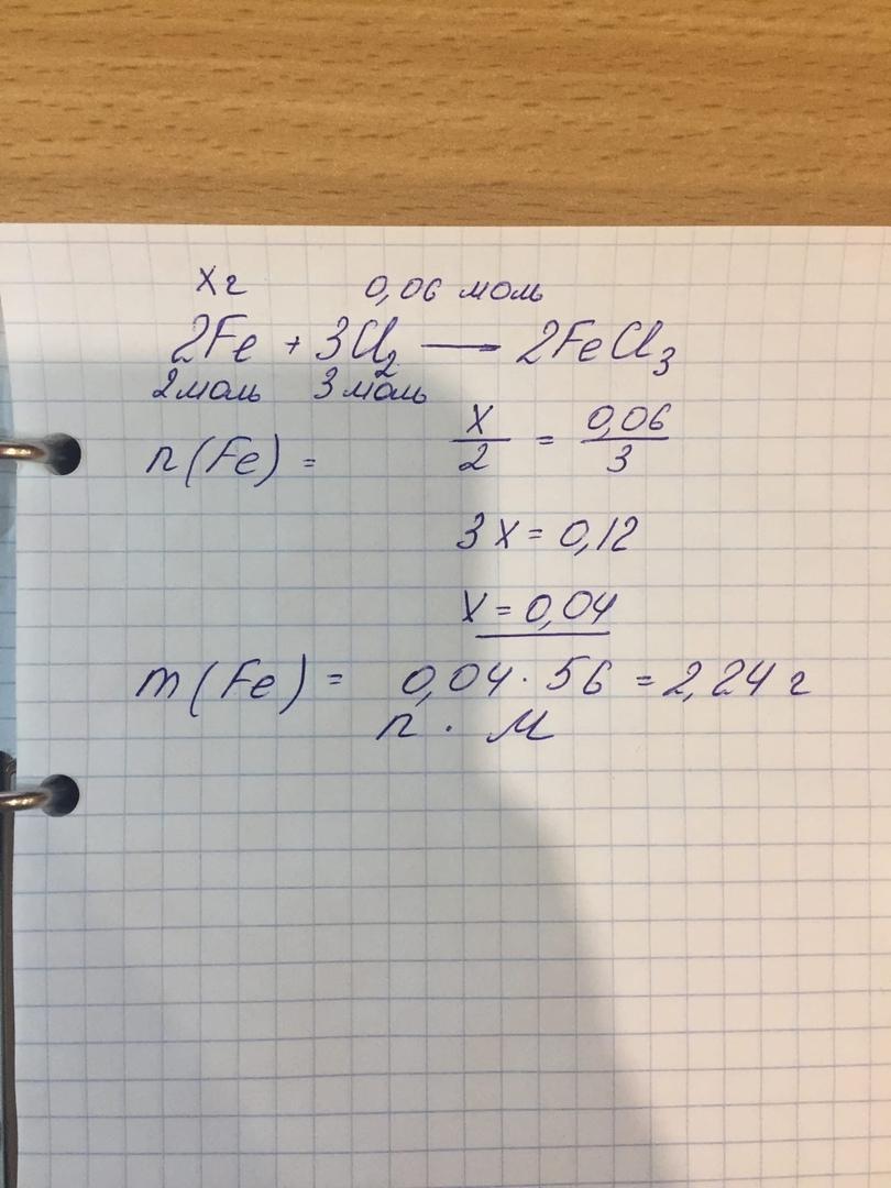 Вычисли, какая масса железа потребуется для реакции с 0,06 моль хлора.