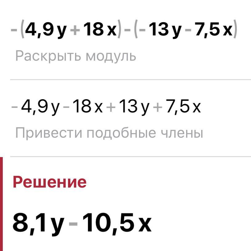 Раскрой скобки и упрости выражение. −(4,9y+18x)−(−13y−7,5x) =