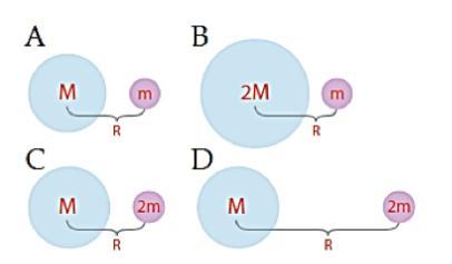 2. Гравитационная сила существует между планетой и ее спутником О. Оцените гравитационные силы, начиная с самых больших! силы одинаковы, пиши буквы рядом друг с другом! Обоснуйте свой выбор Самый маленький Самый большой 1_____2_____3_____4