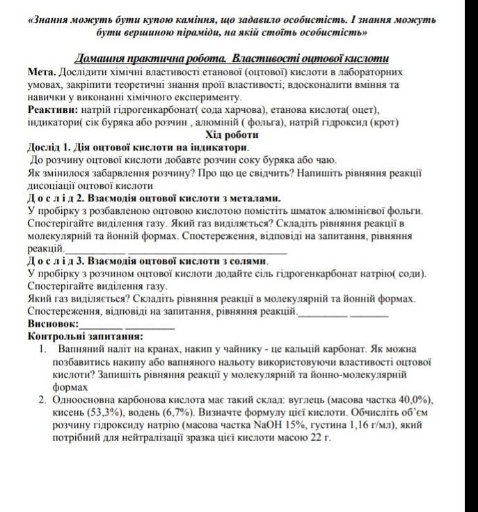 ВЛАСТИВОСТІ етанової кислоти СР,ФОТО ТУТ ​подскажите