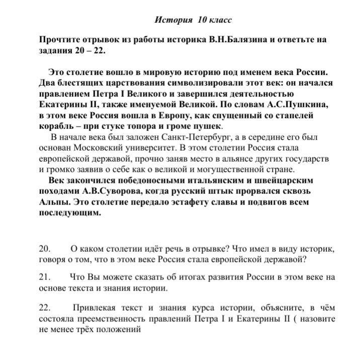 Прочитайте отрывок из работы историка В.Н. Балязина и ответьте на задания 20-22