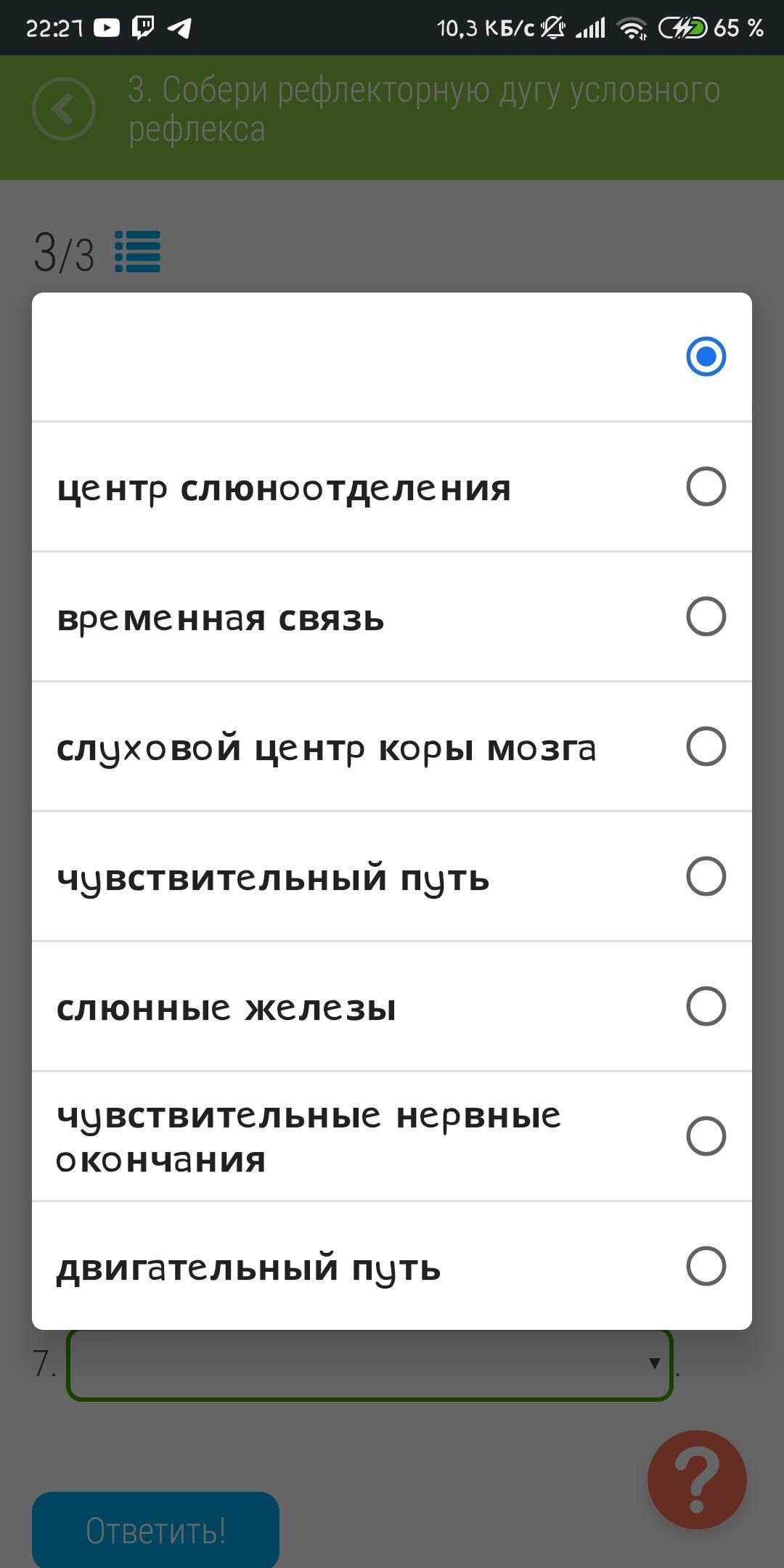 Укажи последовательность передачи нервного импульса по дуге условного слюноотделительного рефлекса у человека на звонок: