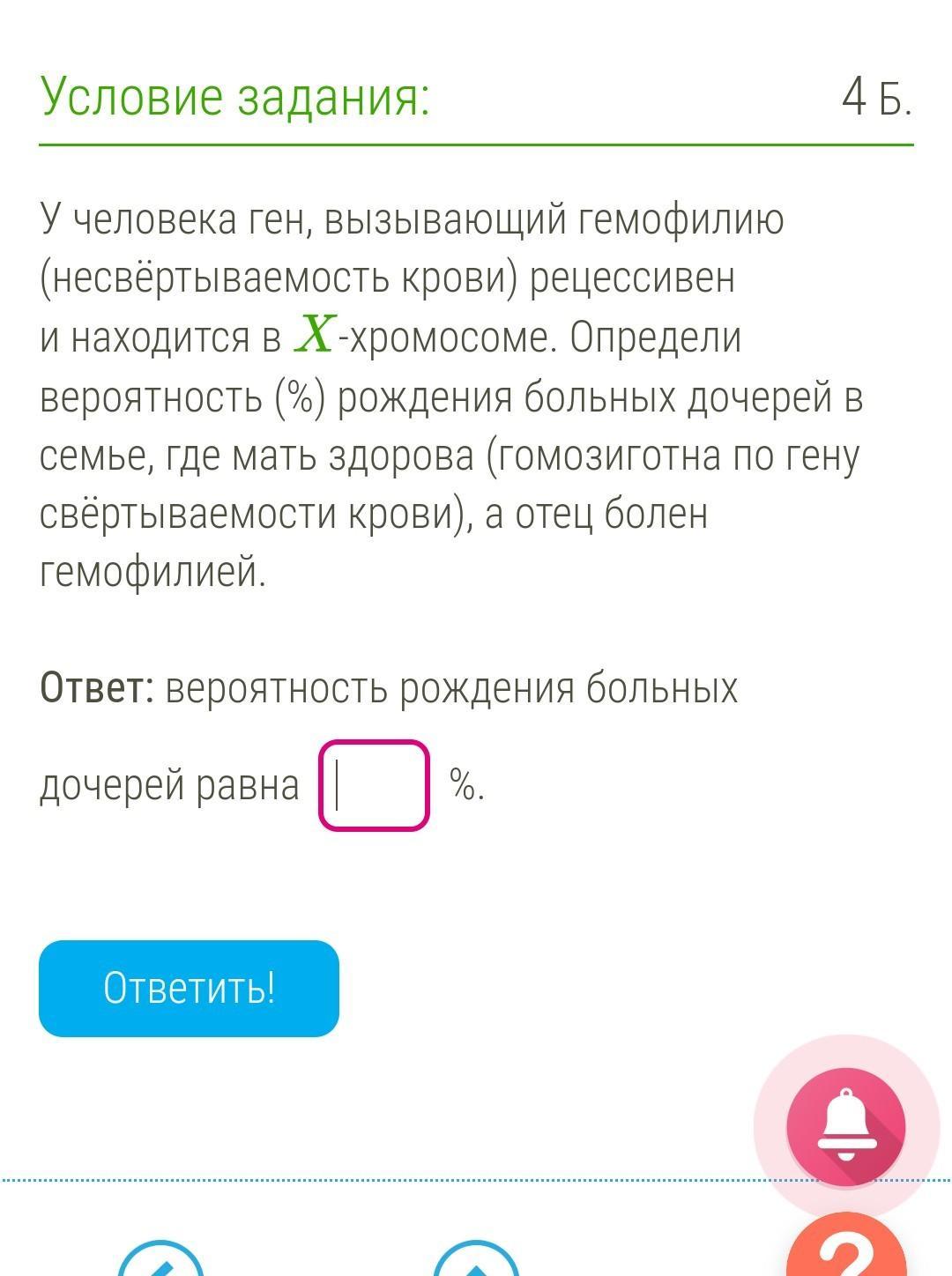 ВЕРОЯТНОСТЬ рождения больной дочери 0%