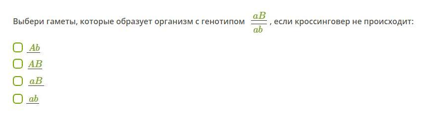 Выбери гаметы, которые образует организм с генотипом, если кроссинговер не происходит: