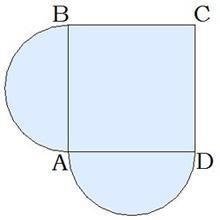 ABCD — квадрат, BC= 12 мм, на сторонах квадрата AB и AD построены полукруги. Вычисли площадь полученной фигуры (π≈3).