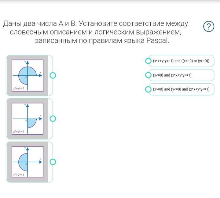 Даны два числа А и В. Установите соответствие между словесным описанием и логическим выражением, записанным по правилам языка Pascal.