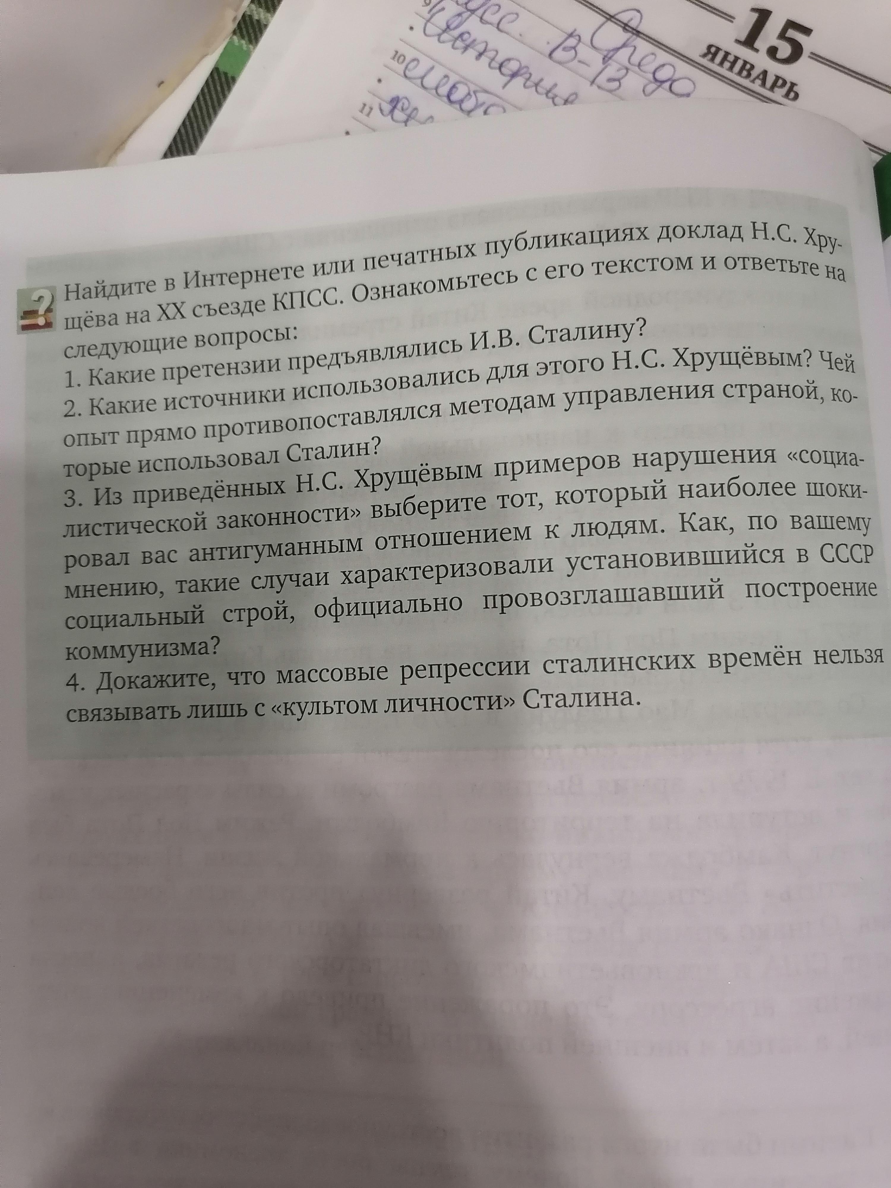 1.Многочисленные беззакония предыдущих лет, масштабы репрессий.Хрущев говорил о пренебрежении Сталина принципам коллективного руководства,о личной причастности к репрессиям. На Сталина же,Хрущев возложил также неподготовленность к войне,жёсткое поражение 1941-42 гг