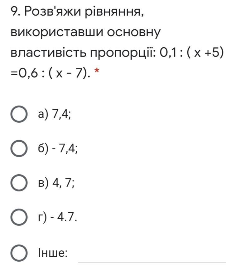 0,1 : (x + 5) = 0,6 : (x - 7)