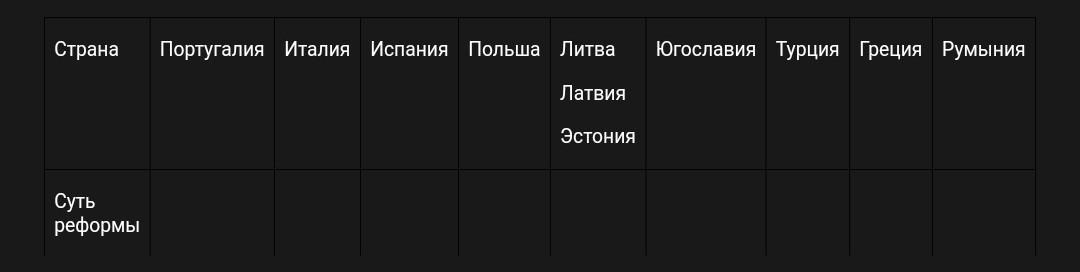 Заполните таблицу: «Реформы европейских правительств с целью установления социального мира»