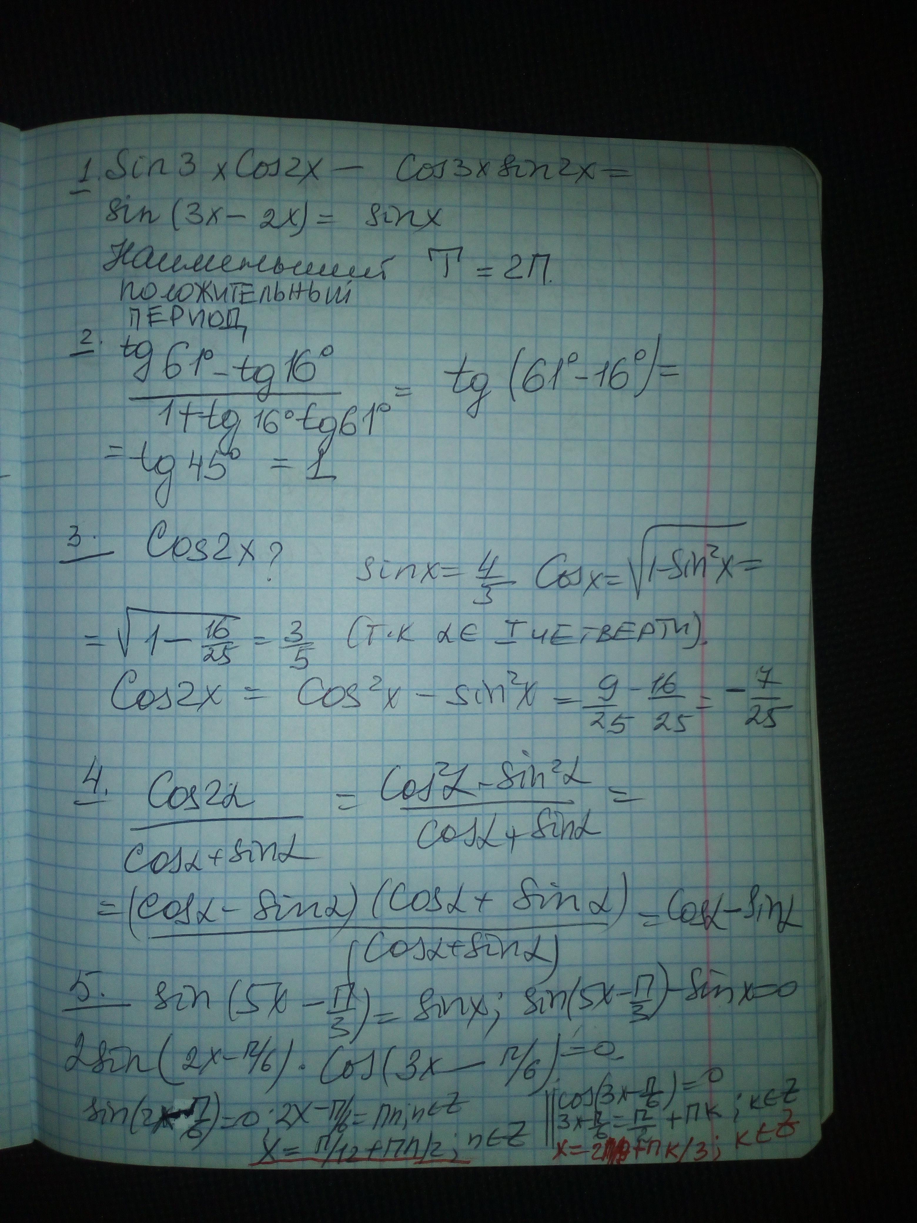 ответ на пятое задание х=π/12+πn/2 n∈Z