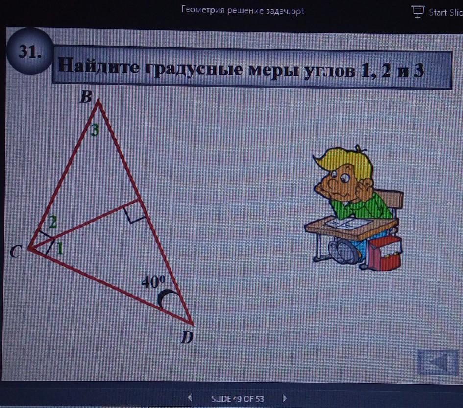угол 1=180-90-40=50 -по теореме о сумме углов в треугольнике