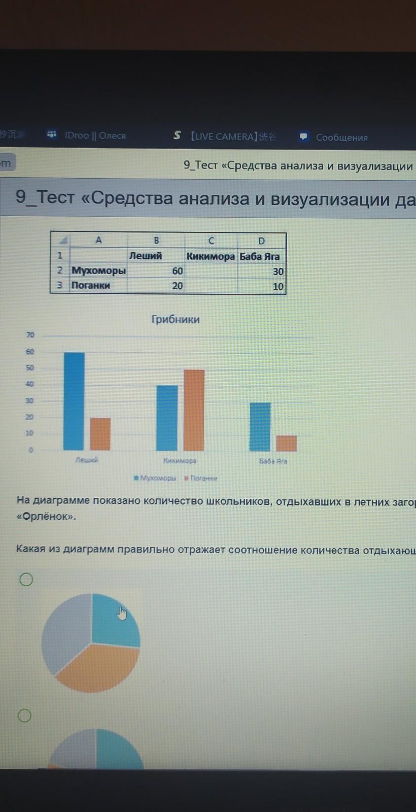 На диаграмме показано количество школьников, отдыхавших в летних загородных лагерях "Берёзка" "Смена" и "Орленок".