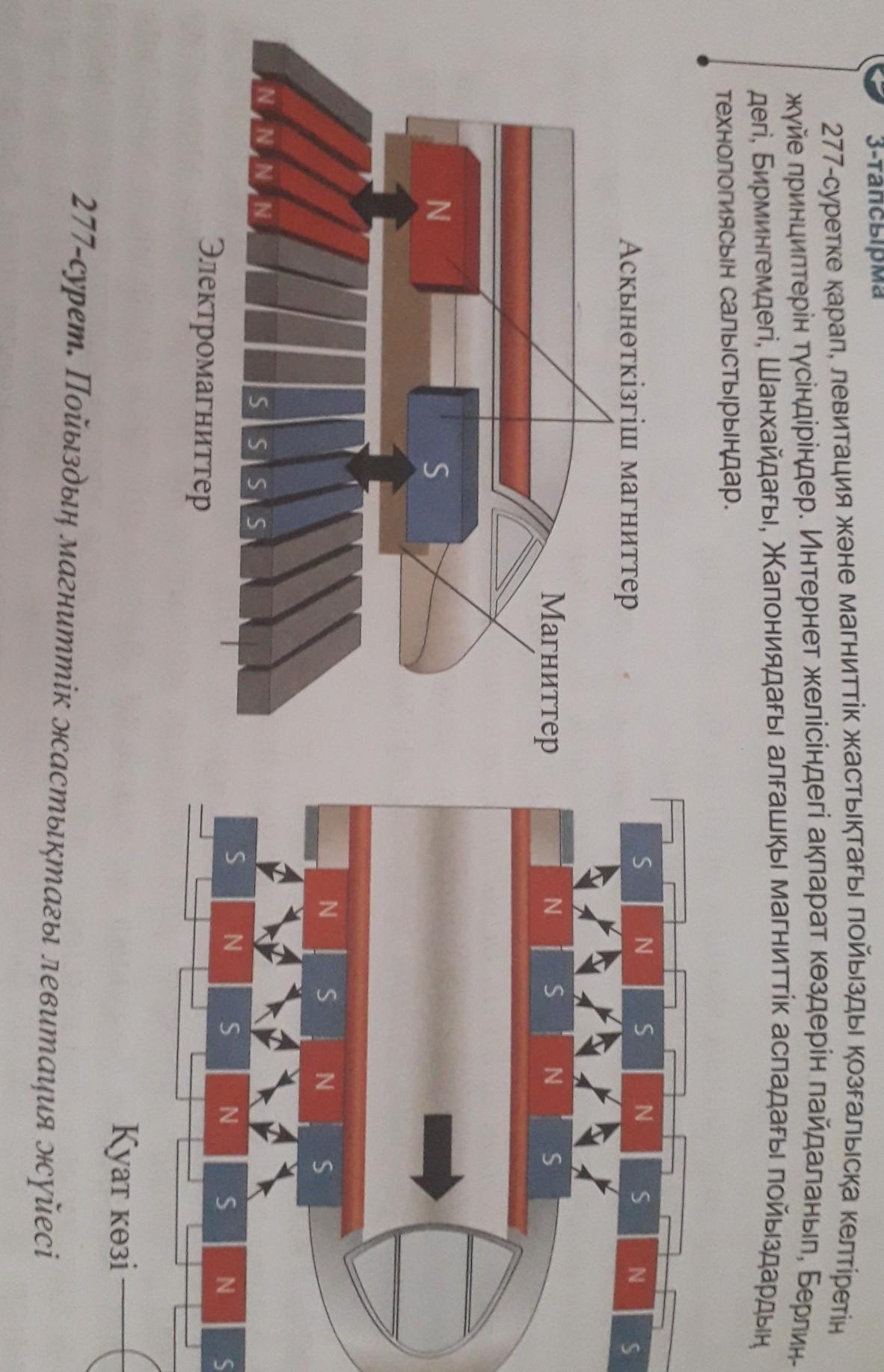 277-суретке қарап, левитация және магниттік жастықтағы пойызды қозғалыска кері