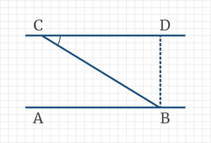 Прямые АВ и CD параллельны. СВ = 42 см, ∠ВСD = 30°. Найдите расстояние между прямыми АВ и CD.